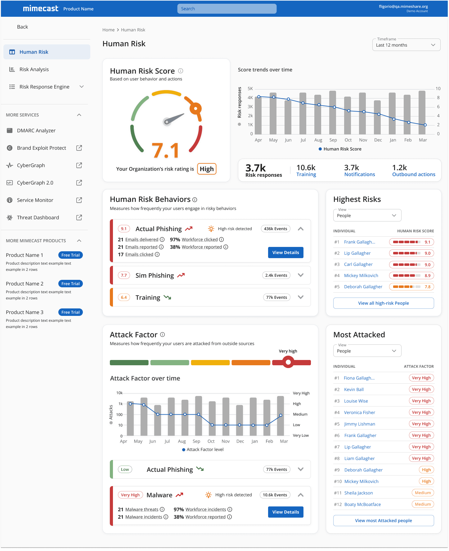 “Jason designed something incredible for one of our most groundbreaking products. His designs - articulating the benefit of Human Risk helped make our company sellable to Mimecast.”